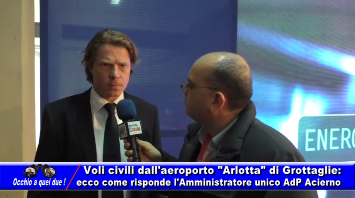 “Occhio a quei due!” (in onda su “Delta Tv”, canale 78 del digitale terrestre): Aeroporto “Arlotta” di Grottaglie, convegno “Test bed”, 15 marzo 2016. Voli civili negati al nostro scalo: l’Amministratore Unico di Aeroporti di Puglia Giuseppe Acierno appare in difficoltà dinnanzi al microfono di Luigi Abbate ed alla telecamera di Francesco Borgia; sembra nervoso. Beh, noi non facciamo sconti a nessuno! Guardate il video e – se lo ritenete opportuno – condividetelo, per far vedere come viene trattata Taranto.