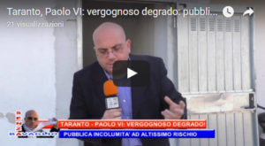 VIDEO PRECEDENTI Taranto, Paolo VI: vergognoso degrado: pubblica incolumità ad altissimo rischio VIDEO SUCCESSIVI Partito Democratico di Taranto allo sbando – Le gravi colpe dell’on. Pelillo