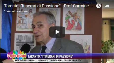 VIDEO PRECEDENTI Taranto: “Itinerari di Passione” – Avv. Gina Lupo, Consigliera di Parità Prov. Taranto VIDEO SUCCESSIVI Lizzano (TA): “Passione di Gesù Cristo” – 47° Edizione – Angelo Nisi, Associazione “Pietre Vive”