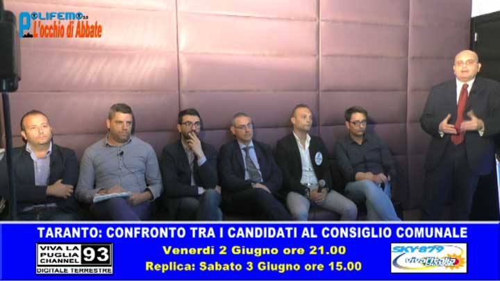 VIDEO PRECEDENTI Polifemo del 26 Maggio 2017 – Taranto Elezioni amministrative: ecco alcuni candidati al consiglio comunale VIDEO SUCCESSIVI Polifemo del 2 Giugno 2017 – Taranto Elezioni amministrative: confronto tra i candidati al consiglio comunale