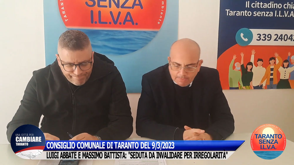 I consiglieri Luigi Abbate (Taranto senza Ilva) e Massimo Battista (Una città per cambiare Taranto) denunciano le irregolarità verificatesi durante il Consiglio comunale del 9 marzo 2023. Si tratta di irregolarità tali da comportare l’invalidamento della seduta e da mettere le opposizioni nelle condizioni di abbandonare l’aula per protesta. Una situazione gravissima rispetto alla quale si procederà nelle sedi competenti.