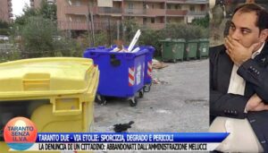 VIDEO PRECEDENTI TARANTO, MAR PICCOLO. L. ABBATE-M. BATTISTA: “L’AMMINISTRAZIONE MELUCCI NON VALORIZZA IL TERRITORIO” VIDEO SUCCESSIVI TARANTO DUE – VIA ETOLIA: SPORCIZIA, DEGRADO E PERICOLI. AMMINISTRAZIONE MELUCCI ASSENTE.