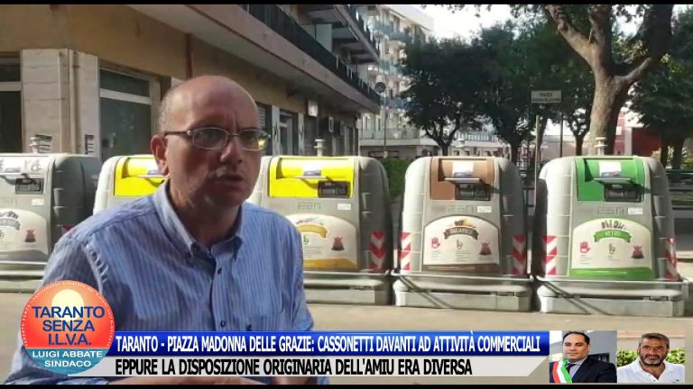 TARANTO – PIAZZA MADONNA DELLE GRAZIE: CASSONETTI DAVANTI AD ATTIVITÀ COMMERCIALI