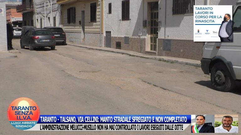 TARANTO – TALSANO, VIA CELLINI: MANTO STRADALE SFREGIATO E NON COMPLETATO