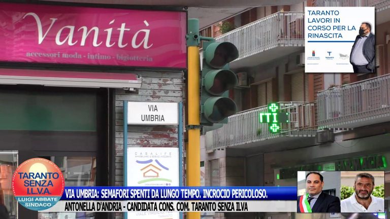 VIA UMBRIA: SEMAFORI SPENTI DA LUNGO TEMPO. INCROCIO PERICOLOSO. ANTONELLA D’ANDRIA – TARANTO SENZA ILVA