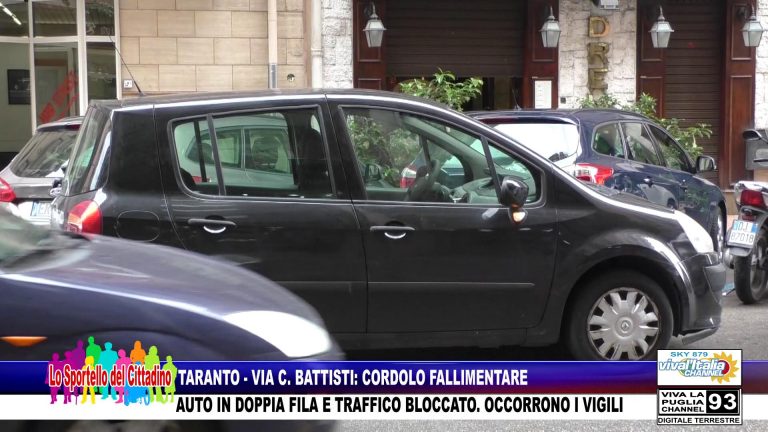 TARANTO – VIA C. BATTISTI: CORDOLO FALLIMENTARE. AUTO IN DOPPIA FILA