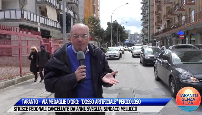 TARANTO – VIA MEDAGLIE D’ORO: “DOSSO ARTIFICIALE” PERICOLOSO E STRISCE PEDONALI CANCELLATE DA ANNI