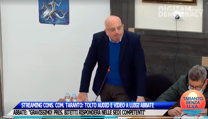 STREAMING CONS. COM. TARANTO: TOLTO AUDIO E VIDEO A LUIGI ABBATE. GRAVISSIMO!